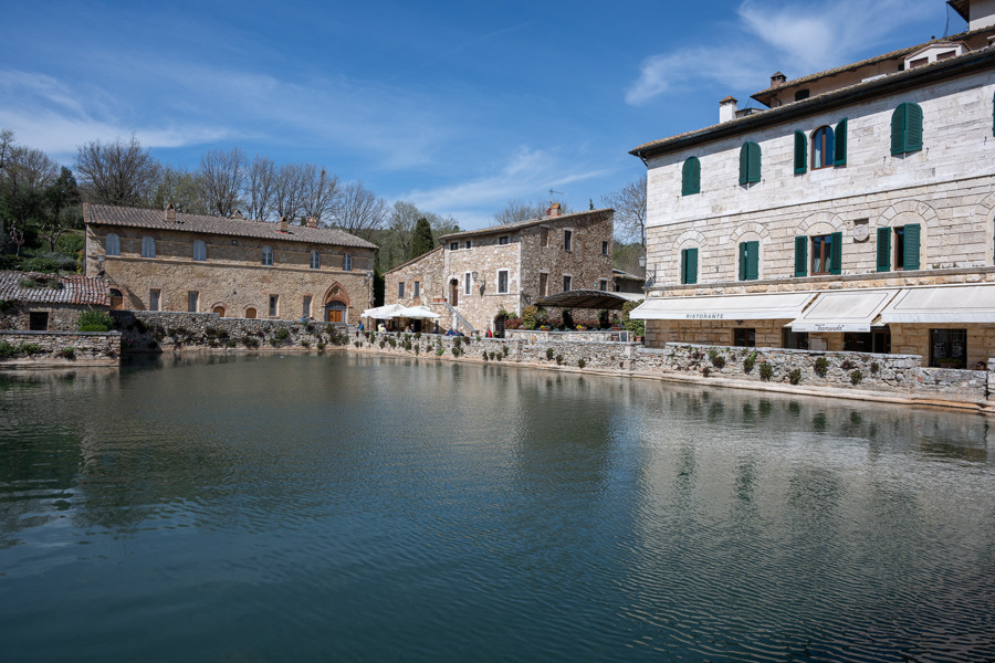 Bagno Vignoni empfängt einen nicht mit Weite, sondern mit Sammlung. Das Dorf ist klein, beinahe zurückhaltend, und doch besitzt es eine der aussergewöhnlichsten Piazze der Toskana: einen Platz aus Wasser. Wo man anderswo Kopfsteinpflaster, Brunnen oder Cafétische erwartet, liegt hier die Piazza delle Sorgenti, ein steinernes Thermalbecken, aus dem warmes Wasser aufsteigt und die umliegenden Häuser in eine sanfte, beinahe unwirkliche Atmosphäre taucht.