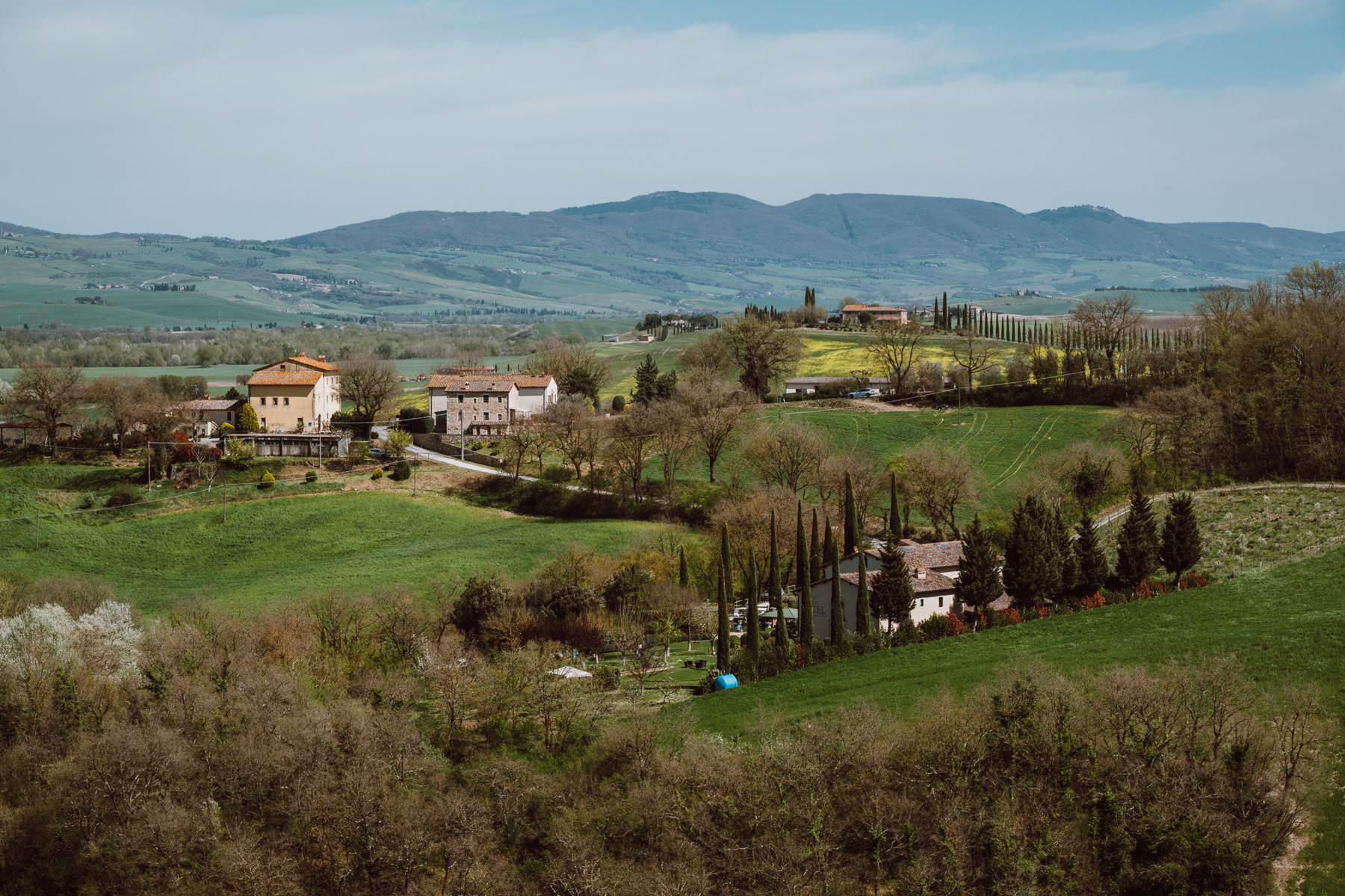 Rund um Bagno Vignoni öffnet sich das Val d’Orcia, eine Landschaft, die seit 2004 zum UNESCO-Welterbe gehört. Die UNESCO beschreibt sie als ländliche Kulturlandschaft, die viel von ihrer Renaissance-Struktur, ihrem Charakter und ihrer Ästhetik bewahrt hat. Für Fotografen ist das Tal ein ikonischer Raum: sanfte Hügel, Zypressenlinien, abgelegene Höfe, helle Kreideböden und Dörfer, die auf Anhöhen liegen wie ruhige Orientierungspunkte im Licht.